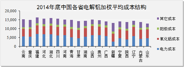 2014年我國電解鋁生產(chǎn)加權(quán)成本分析