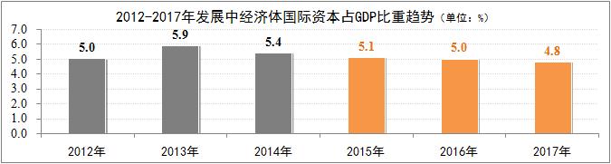 發(fā)展中經(jīng)濟體國際資本外流。世界銀行同時在《全球經(jīng)濟轉(zhuǎn)型》報告中指出,自2013年以來,發(fā)展中經(jīng)濟體國際資本GDP占比逐步回落,除了主要發(fā)展中經(jīng)濟體推行信貸和投資組合政策之外,造成此現(xiàn)象的另外一個重要原因是國際資本外流,并且預(yù)計該趨勢將持續(xù)至2017年。從國際資本流動分布上看,預(yù)計中短期內(nèi)國際資本將主要流向歐洲及中亞地區(qū)的發(fā)展中經(jīng)濟體。
