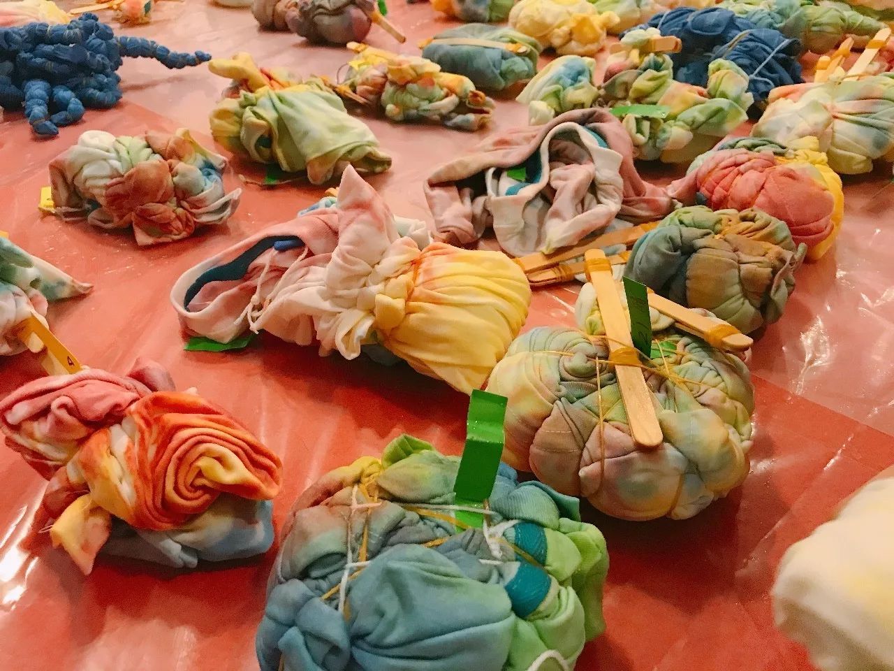 經(jīng)過(guò)了兩個(gè)小時(shí)的扎染實(shí)踐,參加本次課程的家庭都已全部完成了自己的作品。扎結(jié)每種花,即使有成千上萬(wàn)朵,染出后卻不會(huì)有相同的出現(xiàn),趣味無(wú)窮,展開(kāi)后的扎染作品更是絢爛多彩。家長(zhǎng)們和孩子一起感受扎染工藝的魅力,不僅是親子互動(dòng)的溫馨時(shí)刻,更是一場(chǎng)別開(kāi)生面的傳統(tǒng)文化教育。激發(fā)了孩子們豐富的想象力,鼓勵(lì)他們大膽地去創(chuàng)作,激發(fā)孩子們的想象力及動(dòng)手能力。